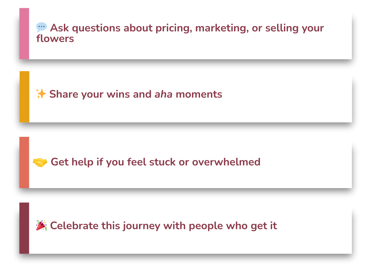Ask questions, share what youâre learning, and connect with other new flower farmers who understand exactly where you are.